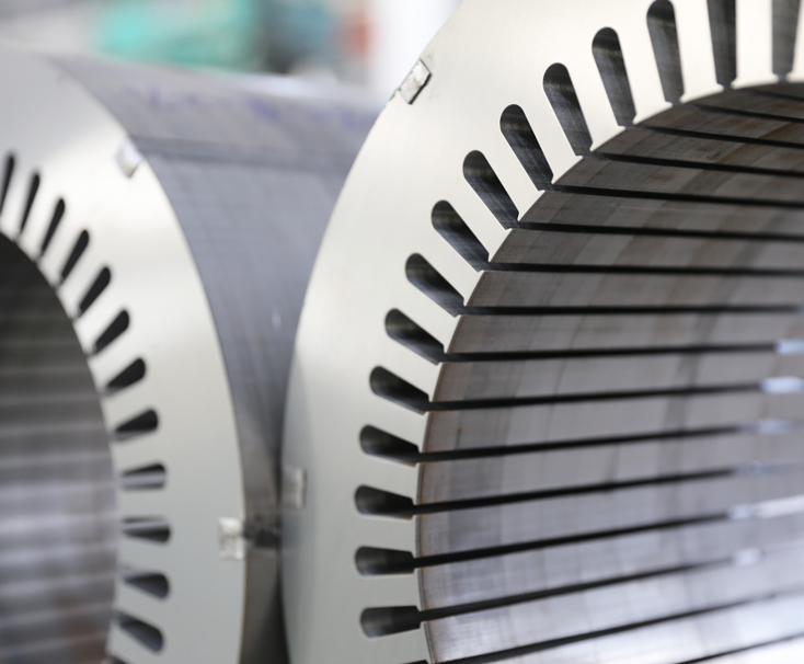 公司電機鐵芯業務地處嵊州,建有集產學研、銷售服務等為一體的綜合化產業基地。專業為電機、發電機客戶提供定轉子沖片及鐵芯的整體解決方案,同時為各類發電機(核動力、風力、水力、火力)、高中低壓交流電機、軌道電機、高效永磁電機、防爆電機和直流電機配套高效節能的定轉子沖片、定轉子鐵芯及鑄鋁轉子。